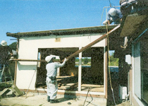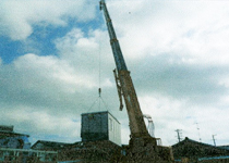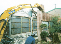 | プレハブ解体撤去 | 16トンレッカー作業 | 養生鉄板敷き | 家屋解体撤去 |