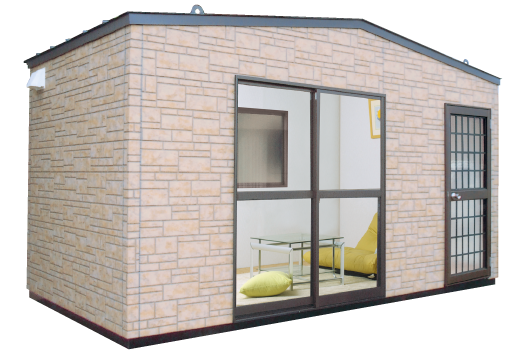 ユニットハウスでは珍しいレンガ調の作りで、おしゃれな外観のユニットハウスもございます。店舗、ネイルサロン、趣味のお店、小売店、アクセサリーショップ、エステサロン、マッサージ店などから事務所、工房兼販売所などお客様のアイデアで様々な用途にご使用いただけます。